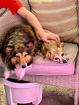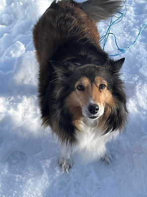 Robin came to us in 2021 at the age of 7. She wasn't a fan of the new puppy and the young toddler her parents had and thus, while picking up an item via Marketplace, we were offered Robin as a bonus. She was extremely nervous when we first brought her home and terribly out of shape. She could not walk to the end of the driveway without wanting a rest. Now she walks a few kilometres daily and is much calmer and loves life with all her pals.