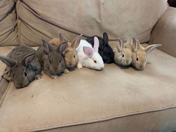 These are some of our bunnies. We have a mix of Flemish and New Zealand rabbits. The Flemish Giant rabbit is the largest breed of domestic rabbit. Both breeds are historically a utility breed used for their fur and meat. They are often kept as pets as they are known for being docile and patient when being handled.